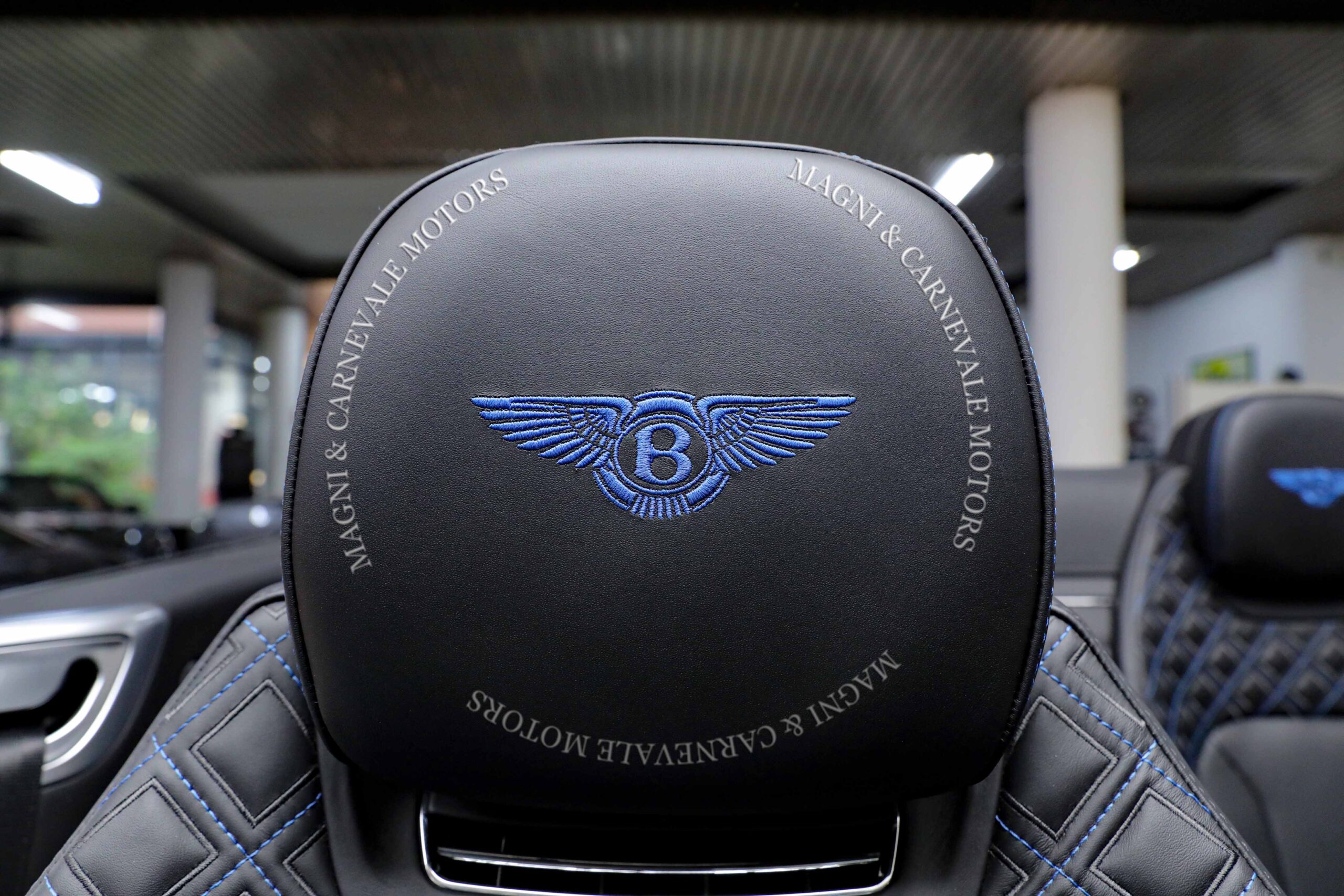 - Cucitura logo Bentley sui poggiatesta dei sedili