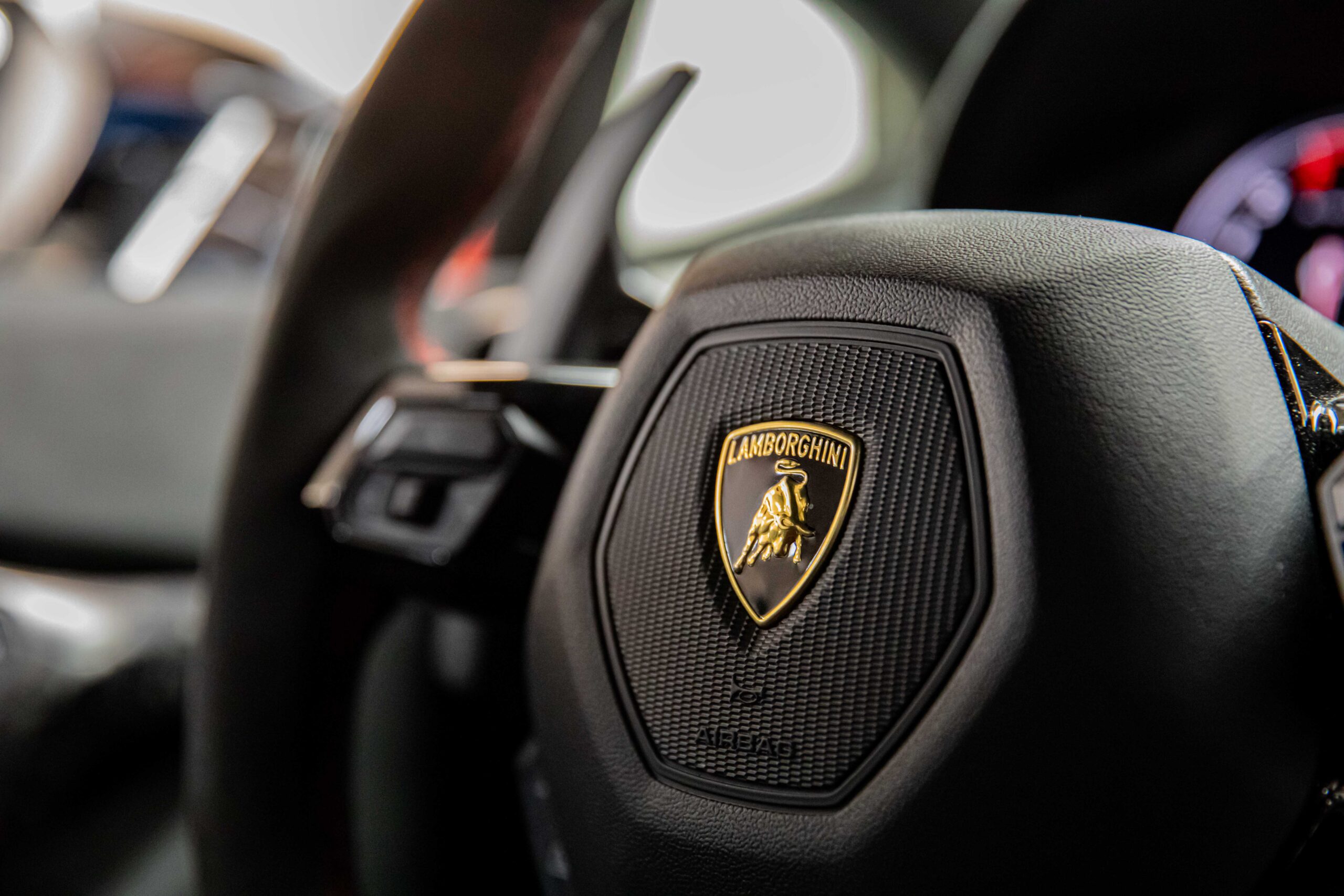 - Scudo Lamborghini ricamato sui poggiatesta