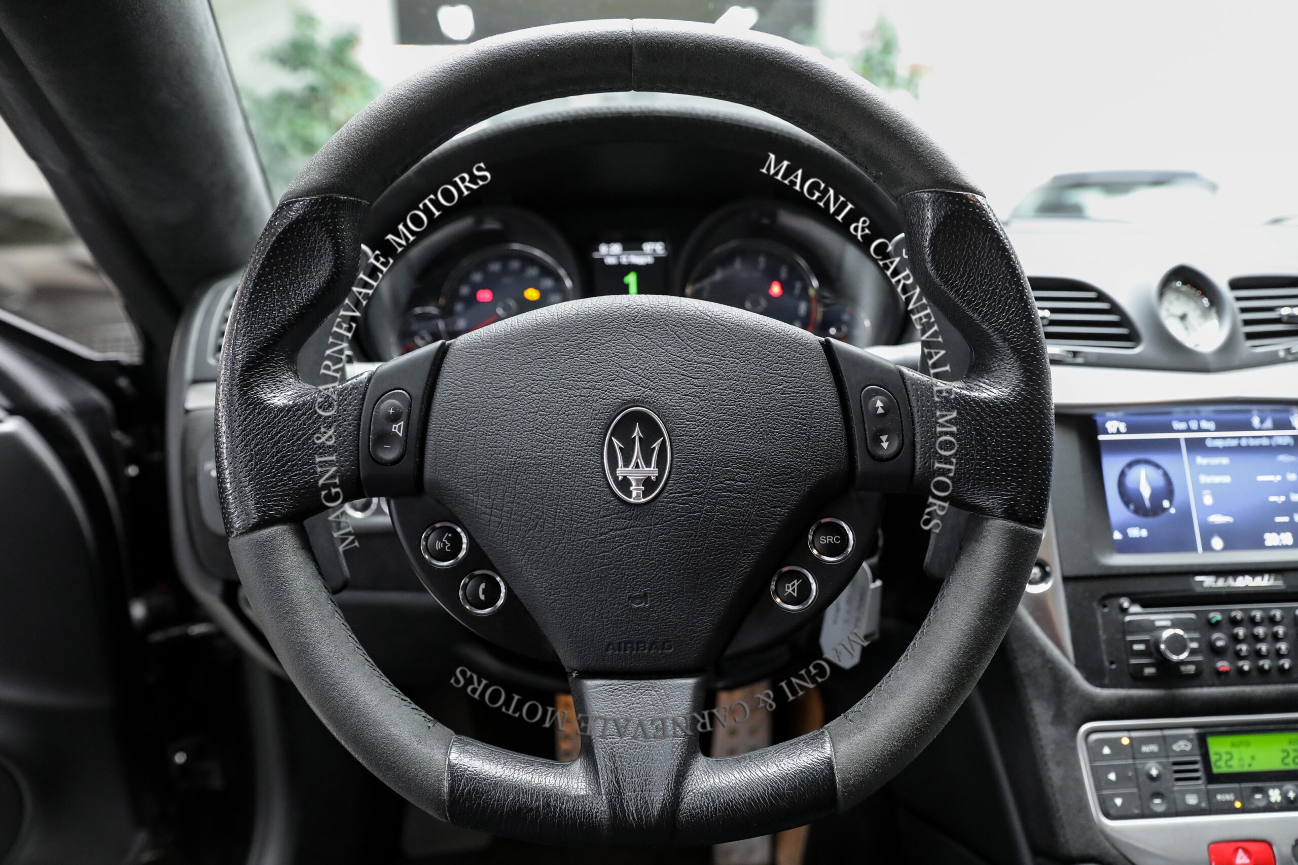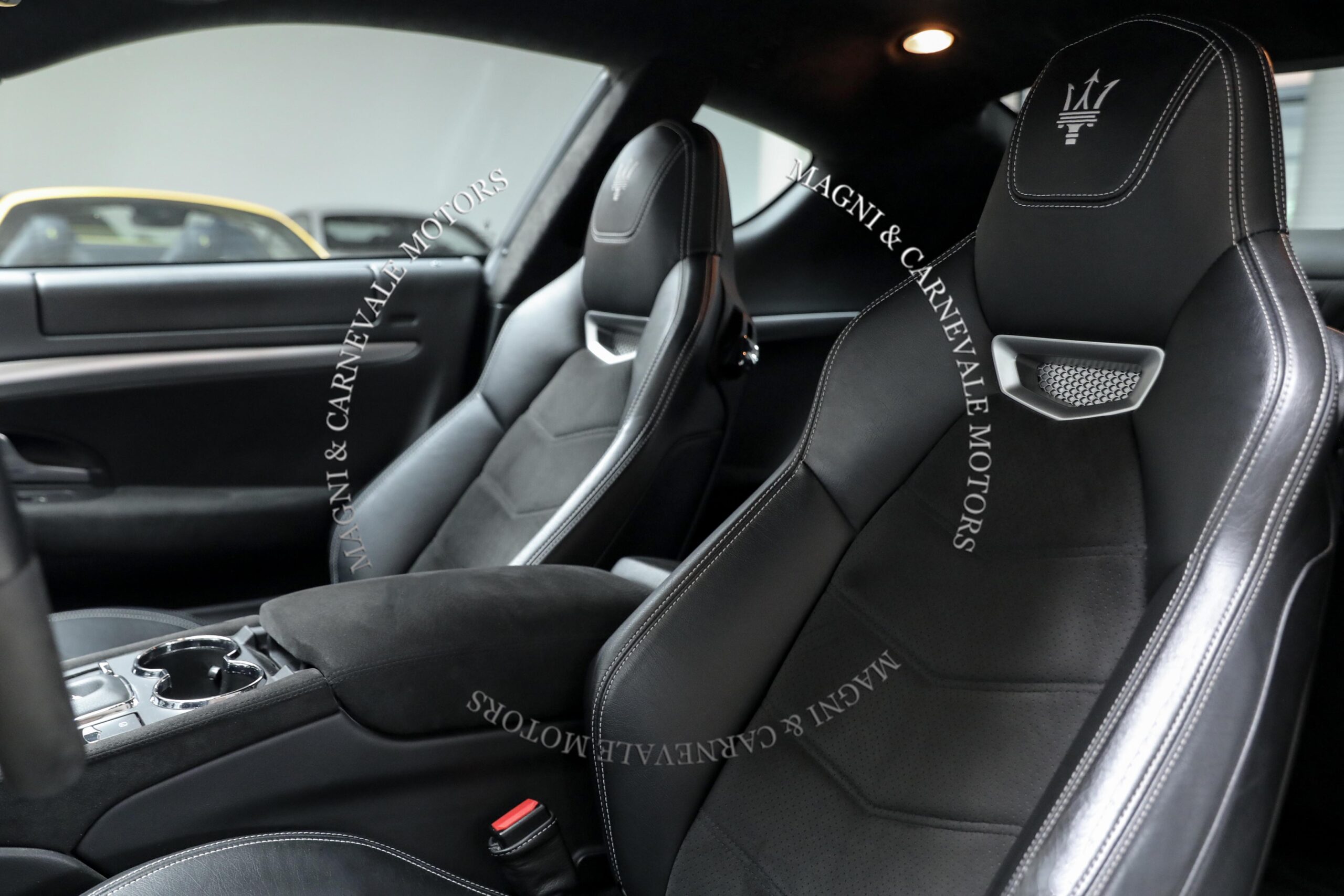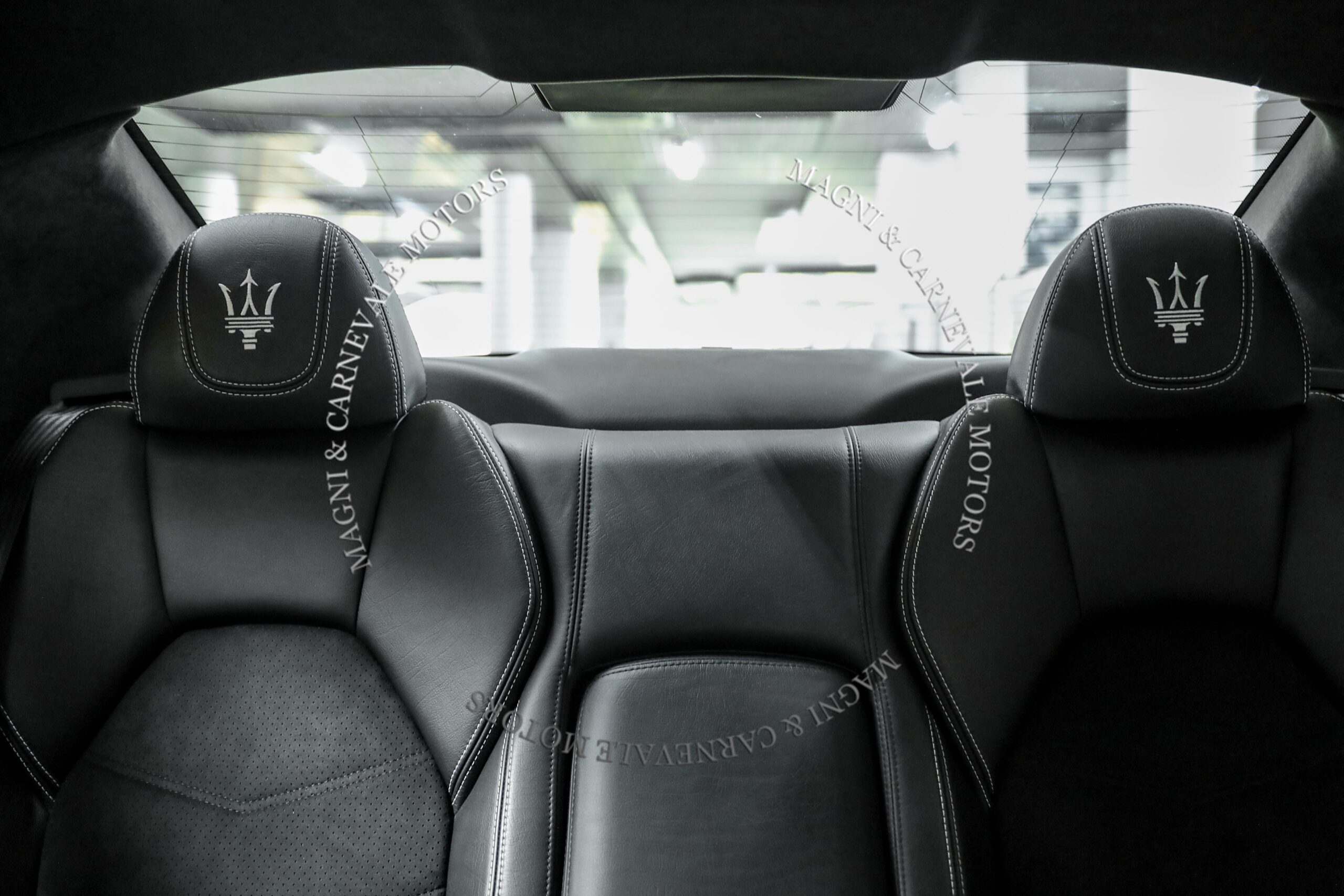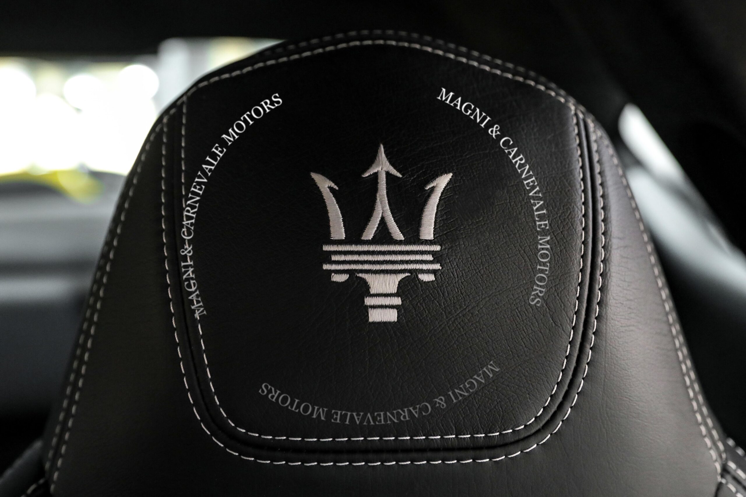 - Tridente “Maserati” cucito sui poggiatesta