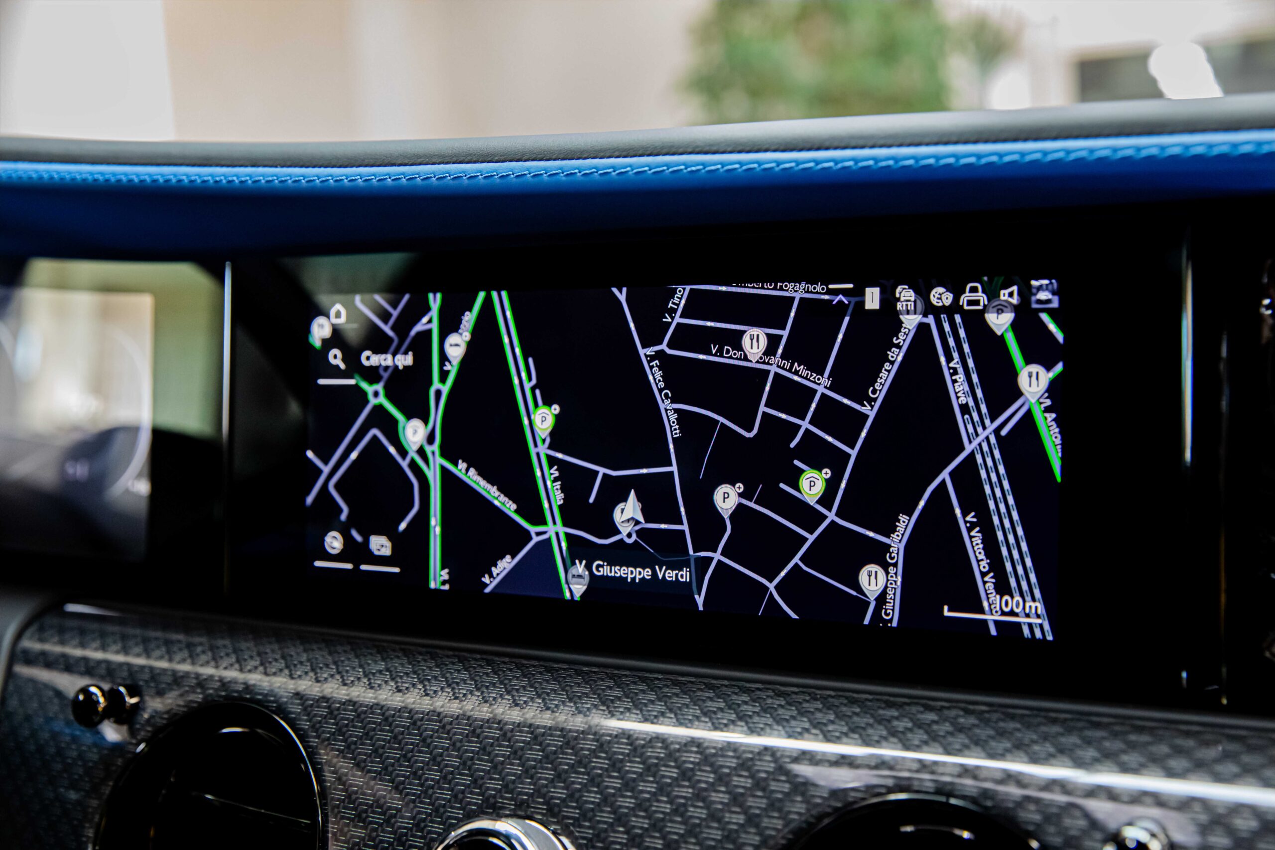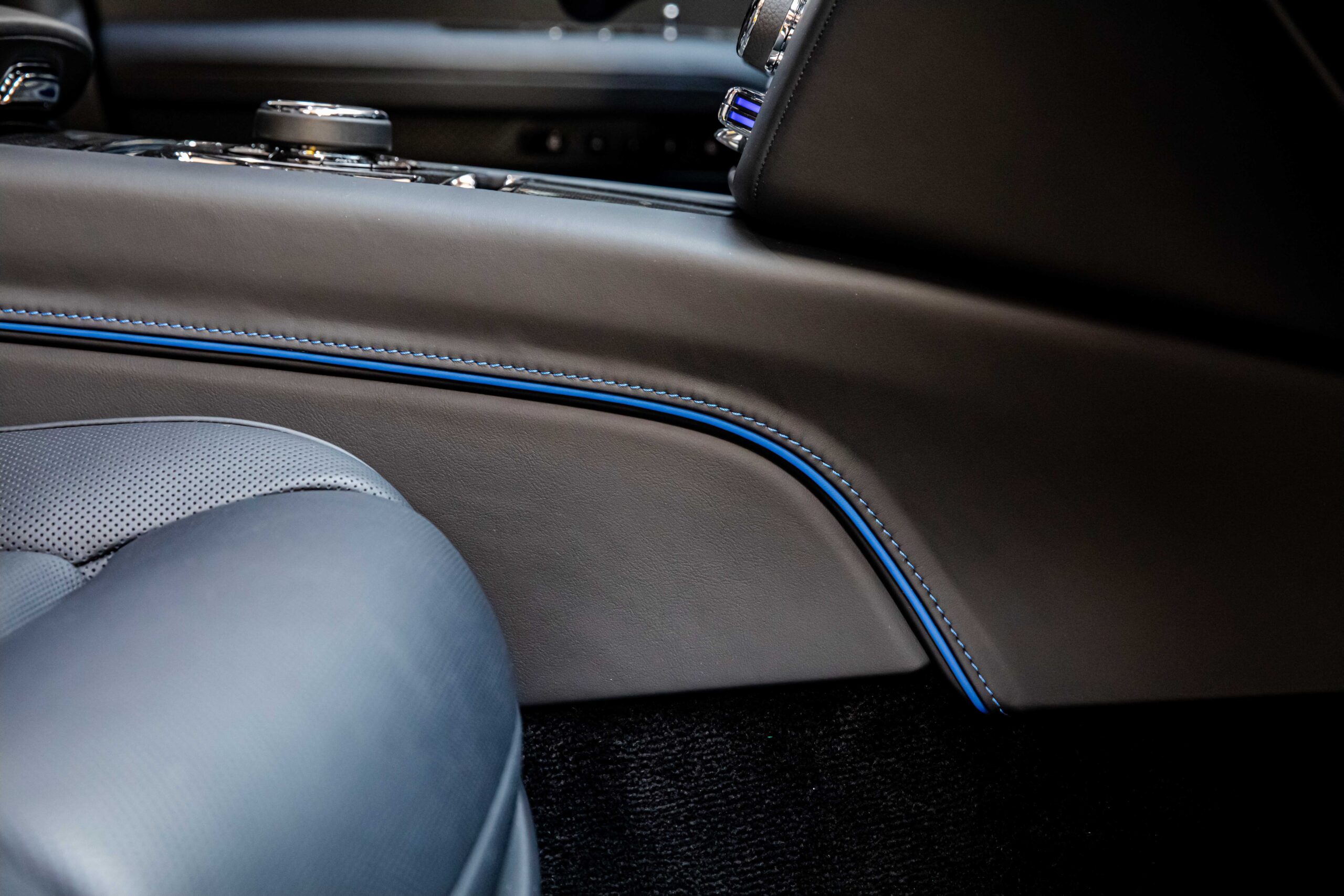 - INTERNI: PELLE NERA CON INSERTI “RADIANT BLUE”