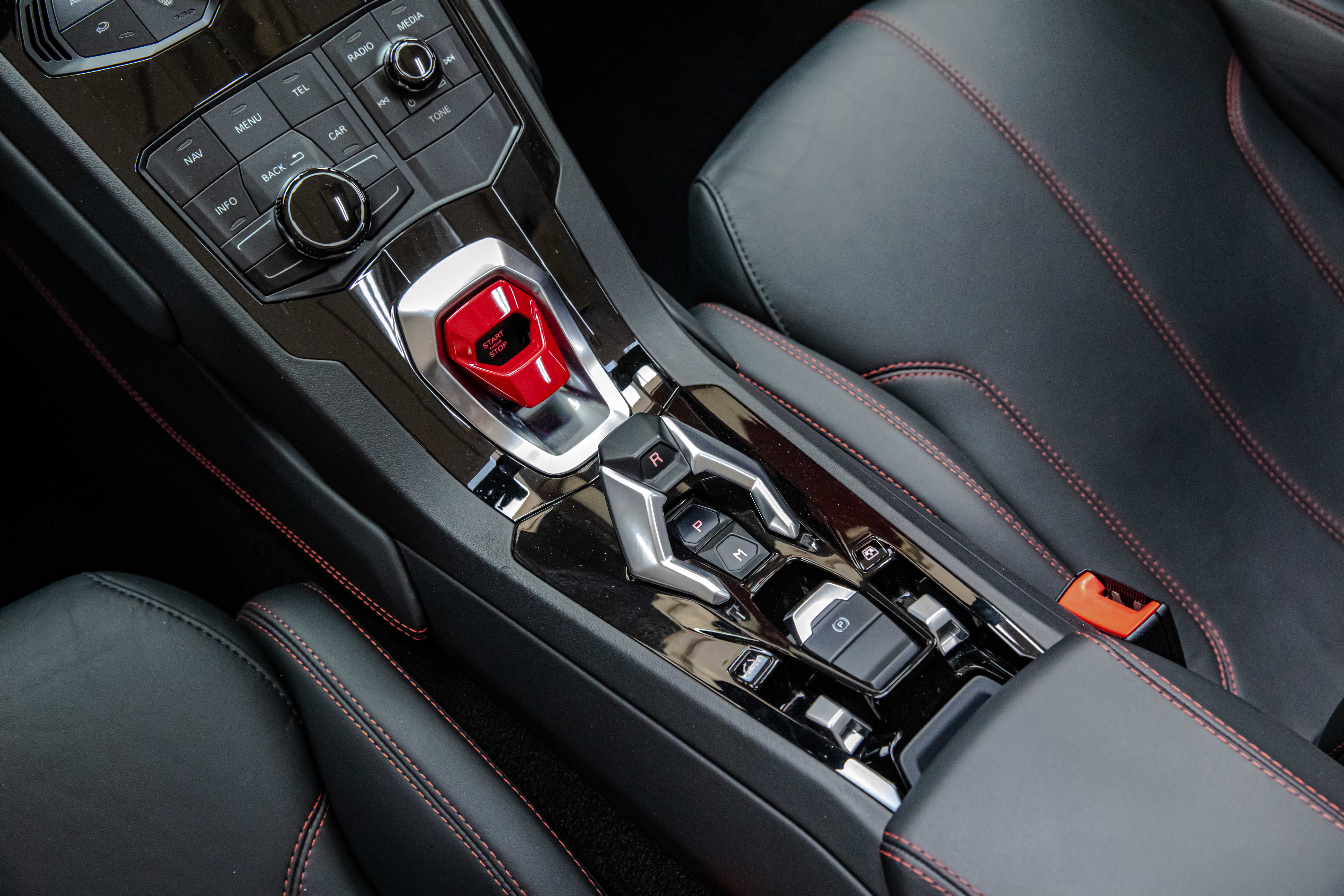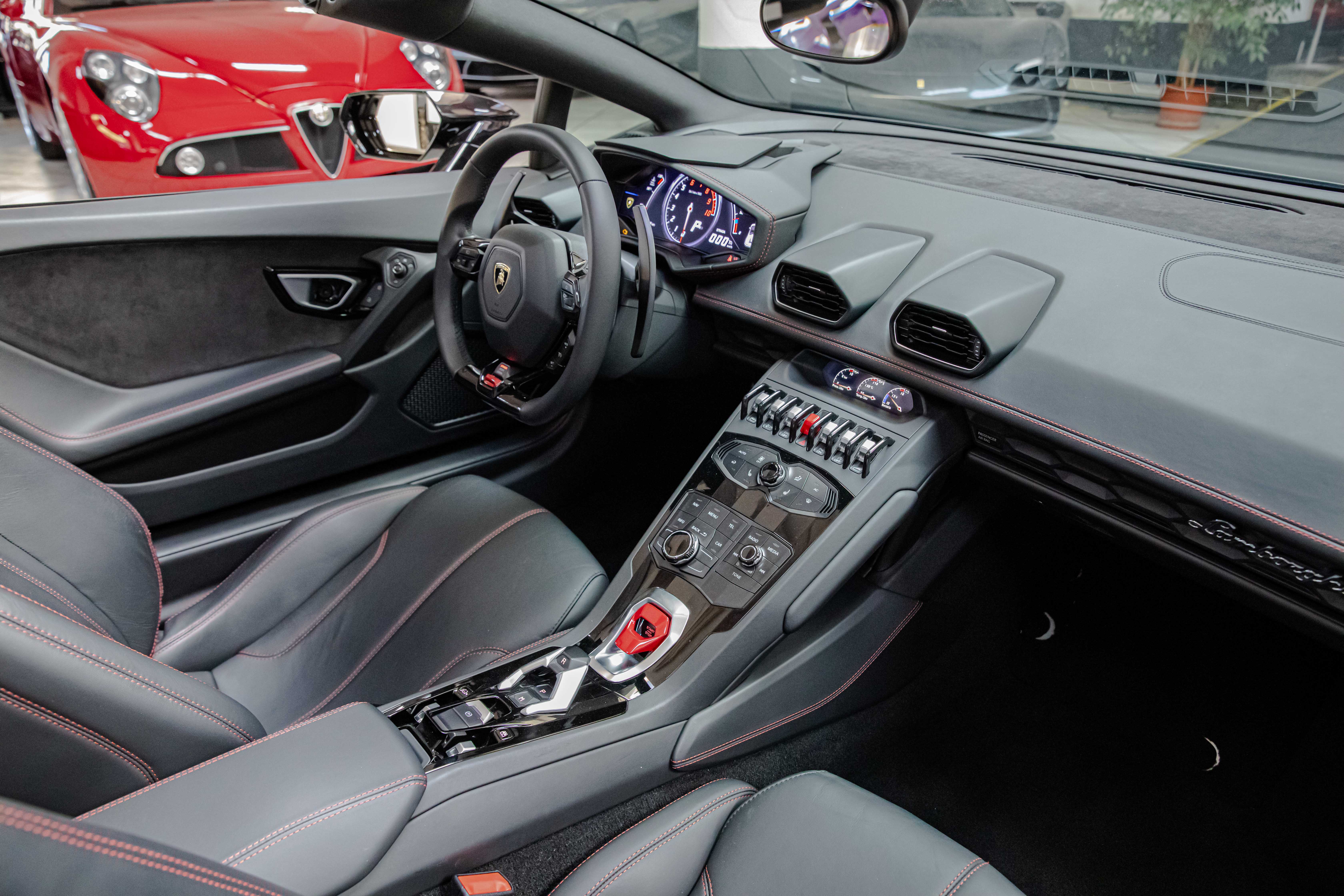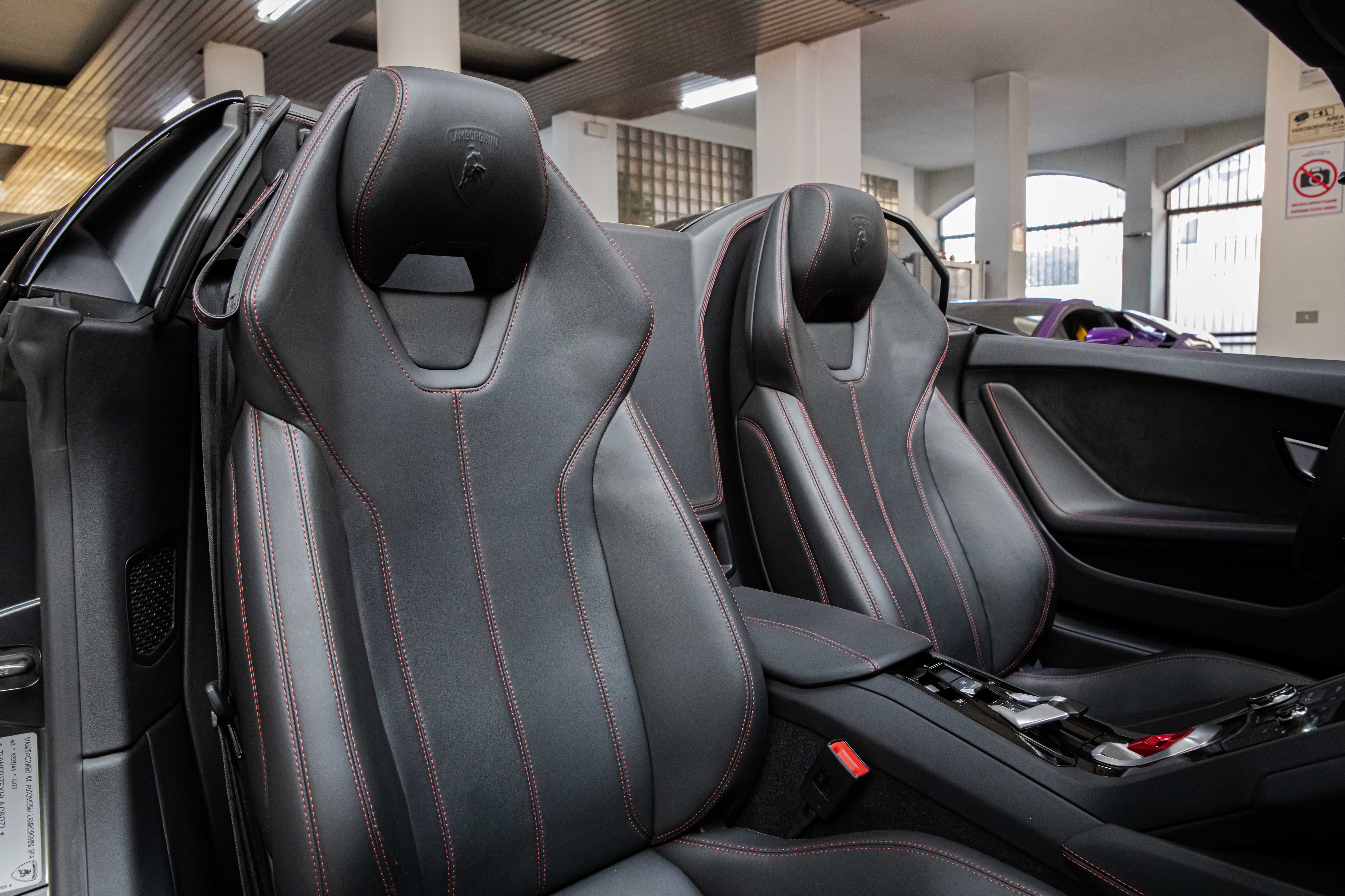 - INTERNI: PELLE TOTALE “NERO ADE” CON CUCITURE A CONTRASTO “ROSSO ALALA”