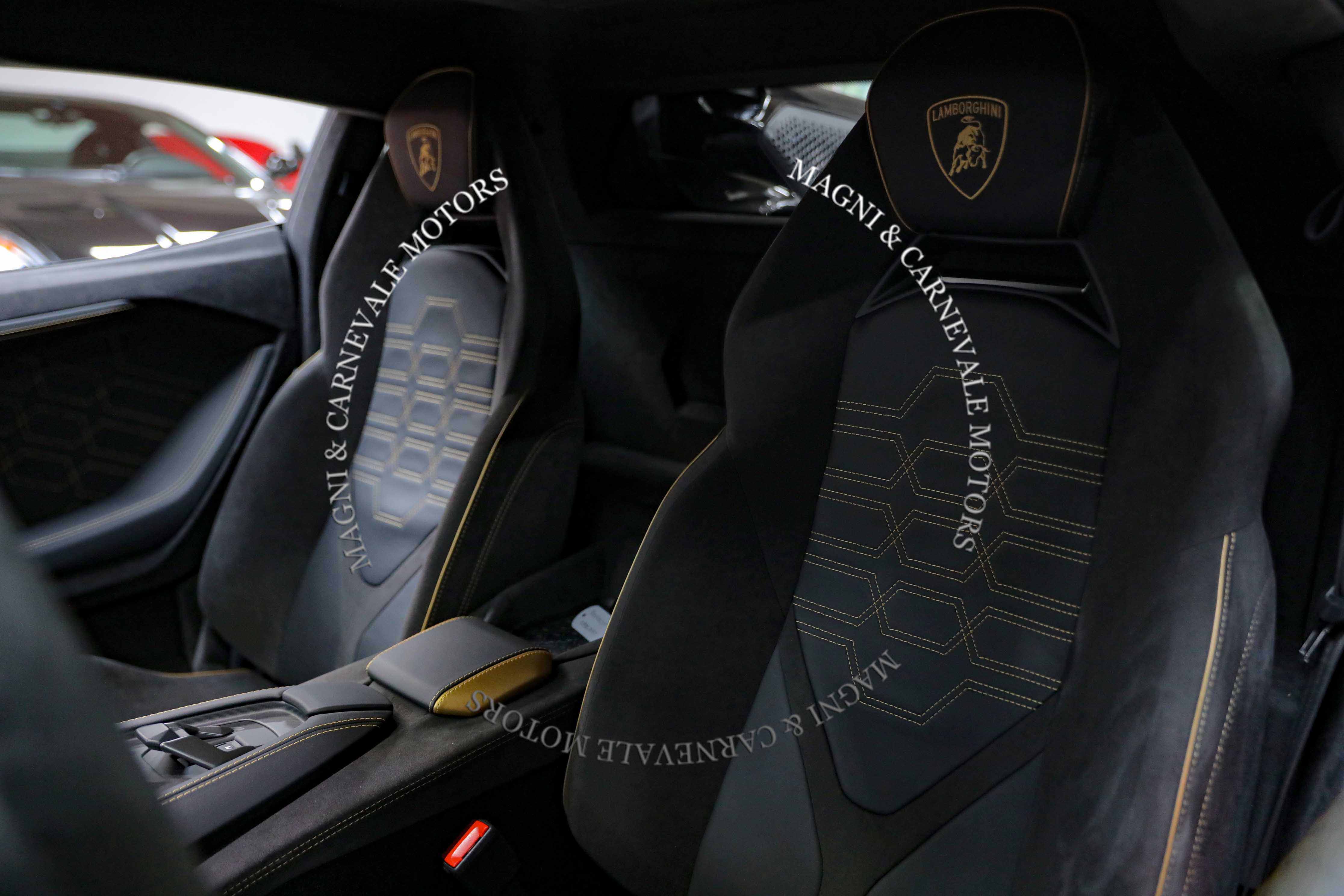 - Scudi Lamborghini cuciti sui poggiatesta